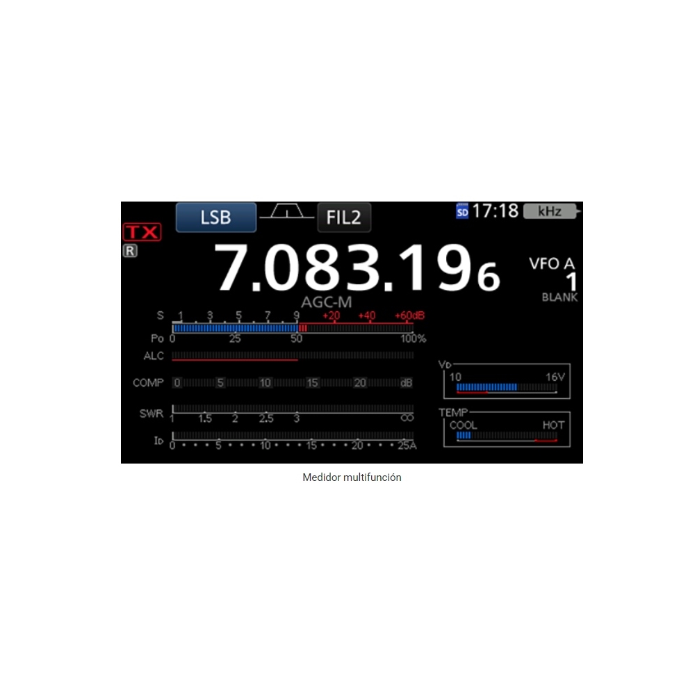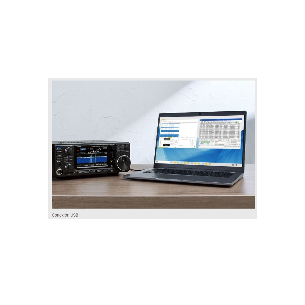 - USB Tipo C™ con dos puertos COM virtuales para operar simultáneamente en modo FT8 y software de registro.