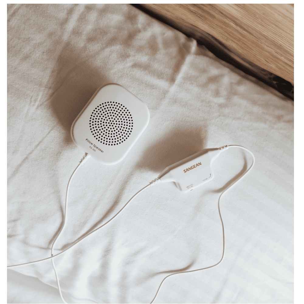 Sangean PS-300 es un altavoz de almohada blanco con amplificador. El altavoz de almohada PS-300 es una combinación única de escucha con comodidad y calidad de audio. Solo tiene que deslizar el altavoz extraplano bajo la almohada o en cualquier otro lugar conveniente para escuchar sus canciones favoritas. El amplificador se puede activar o desactivar para escuchar con privacidad.